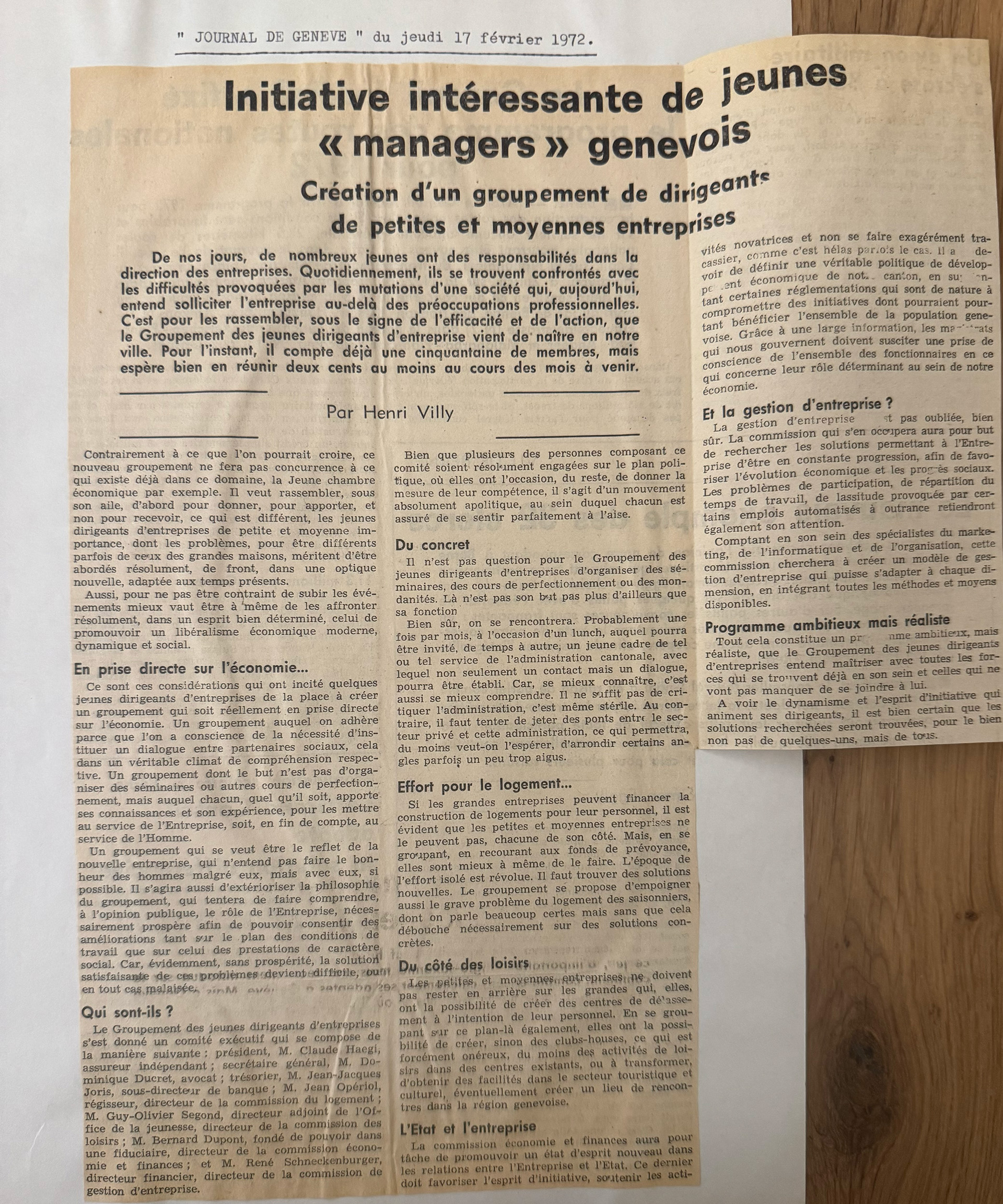 Archives & PhotosCréation du Groupement des jeunes dirigeants d’entreprises2 mars 20262 mars 2026By Claude Haegi0 0 genève, jeune, manager